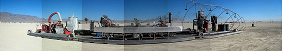 The Mechabolic creature will also function as an odd sort of biological "gas station" in the middle of the desert, collecting, processing and dispensing biomass fuels to power "woodgas" converted art cars. The proposed project includes a series of monthly workshops this spring and summer to convert vehicle engines and generators to "woodgas" operation. These "Power Exchange" workshops will teach the building of simplified downdraft gasifiers, as recently demonstrated at the Shipyard, which produce a synthetic "natural gas-like" fuel from any solid waste biomass- a gaseous fuel that will run in any gas or diesel engine.